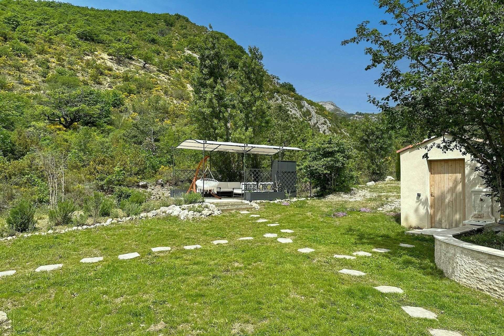 En bordure d'un petit ruisseau, charmant pressoir du 17ème siècle, entièrement rénové et équipé en 2022, bénéficiant de magnifiques vues sur les collines verdoyantes et les montagnes. Un magnifique lieu de vacances au grand calme pour se ressourcer en pleine nature, sans voisin.