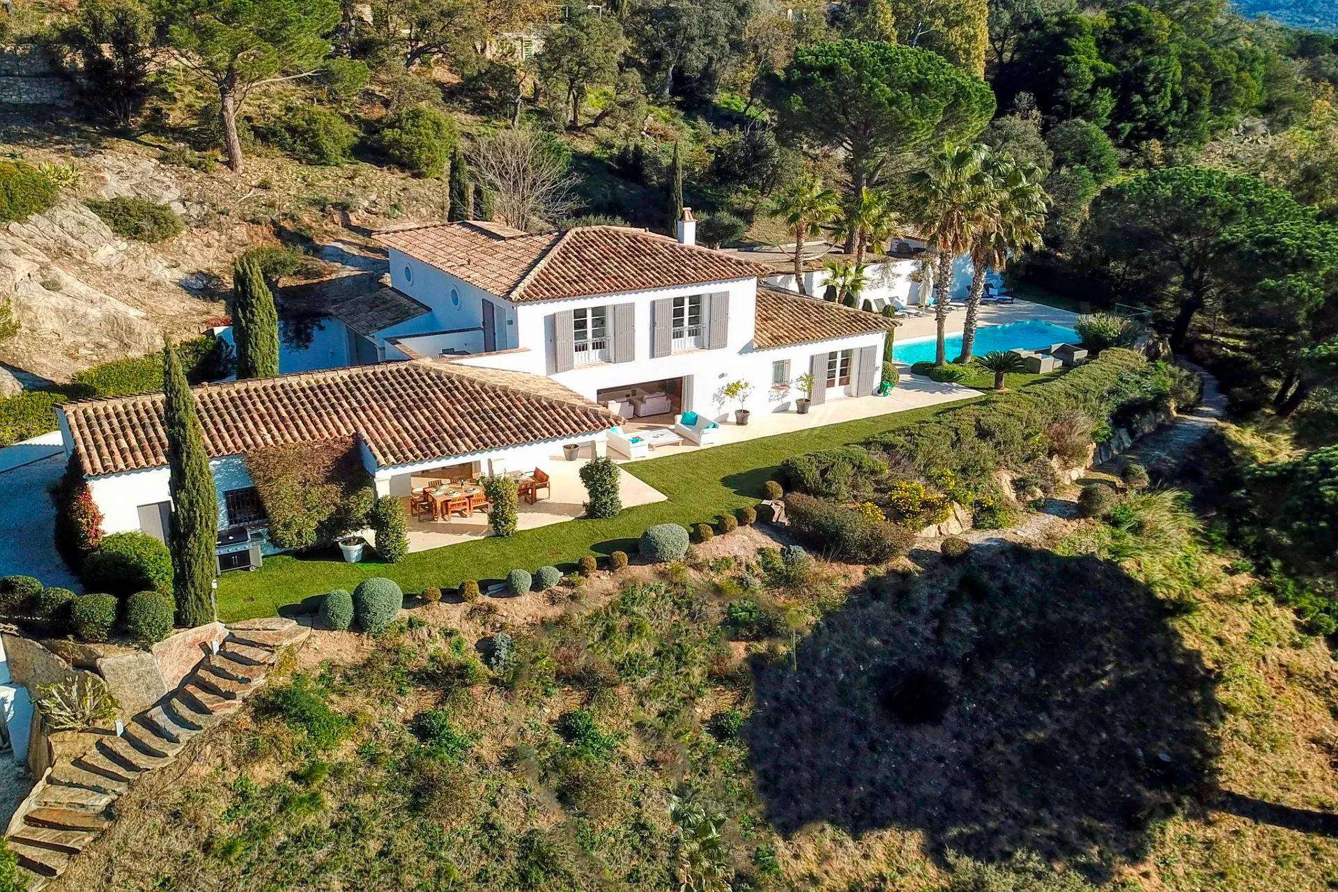 Dotée d'une vue époustouflante qui s'étend des champs de vignes jusqu'au massif des Maures, lieu de balade dans une nature accueillante, cette splendide villa de standing avec piscine privée chauffée et pool-house, offre un cadre de vacances unique, au calme et à proximité de la mer.