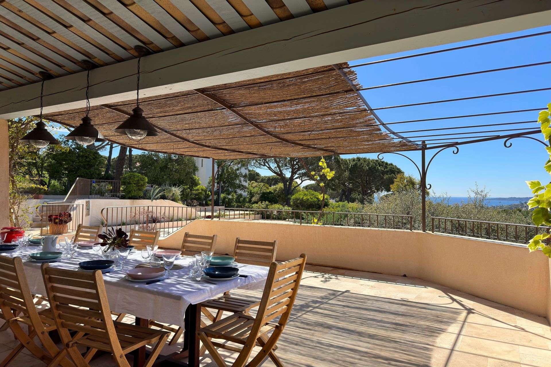 Ravissante villa entièrement rénovée avec soin en 2023 et bénéficiant d'un emplacement idéal proche de la plage de la Nartelle. De grandes terrasses, partiellement ombragées, entourent la piscine et donnent accès au jardin, à la table de ping-pong, à la plancha ainsi qu'au boulodrome. Le tennis du domaine à 100m à pied complète ce beau lieu de vacances.