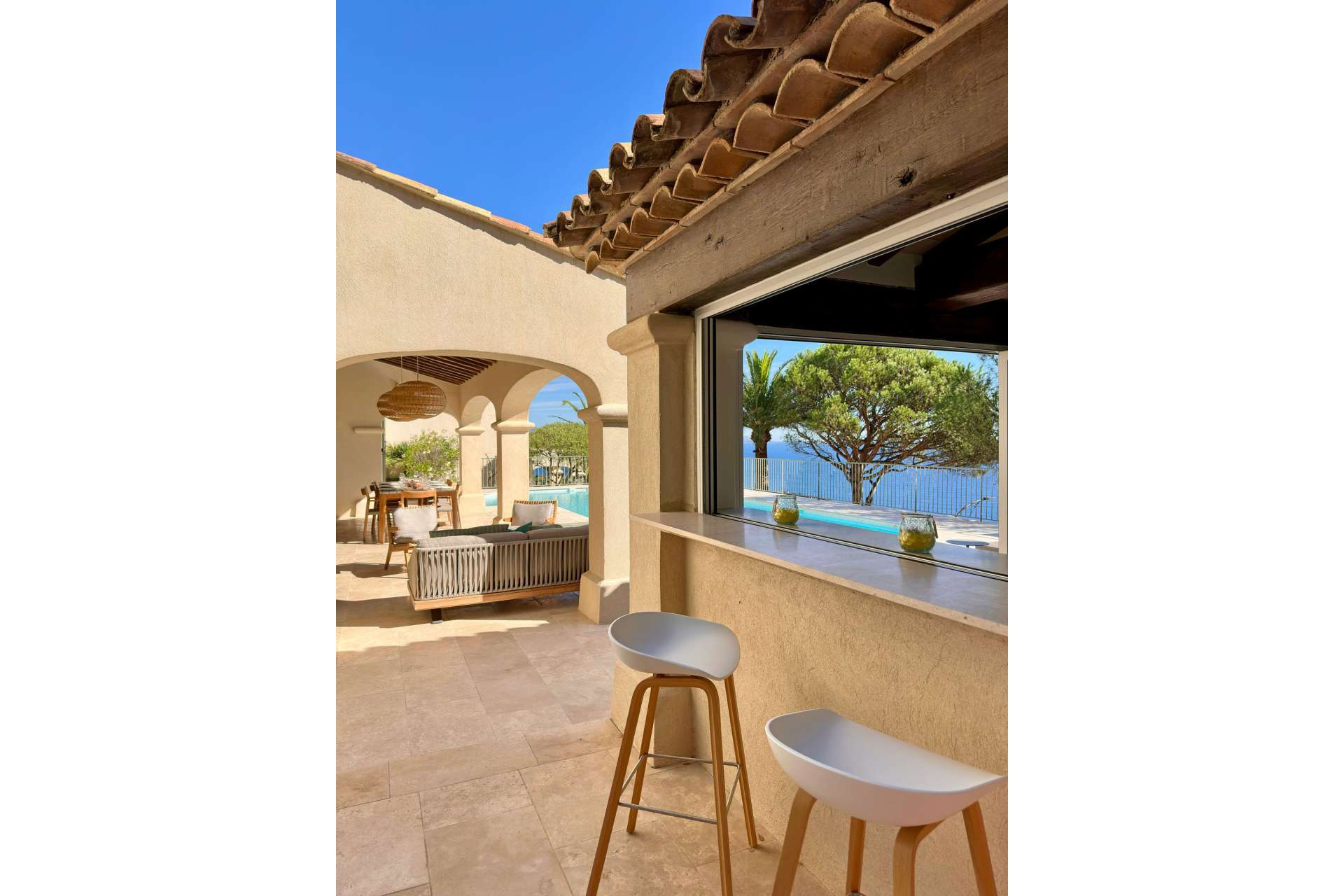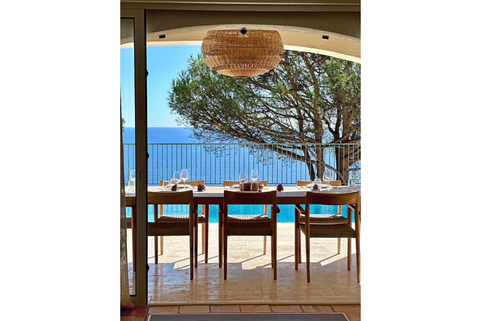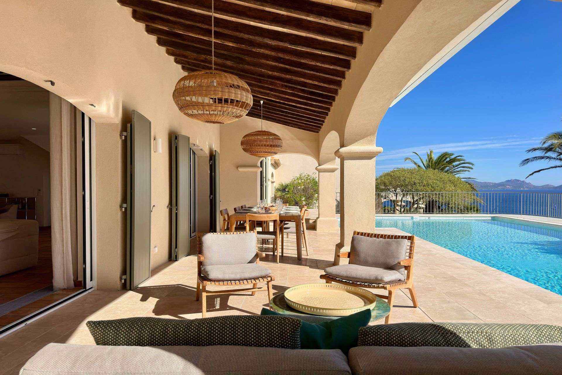 Superbe et spacieuse villa jouissant d’une magnifique vue panoramique sur la mer. Rénovée avec soin en 2024, vous profiterez des espaces intérieurs qui s'ouvrent de plain-pied vers une terrasse couverte confortablement meublée, une grande piscine et un pool-house aménagé. À l’arrière de la maison, une terrasse donne sur un jardin en restanques, agrémenté d’un salon d’été et de petits coins intimistes à l'abris des regards.
