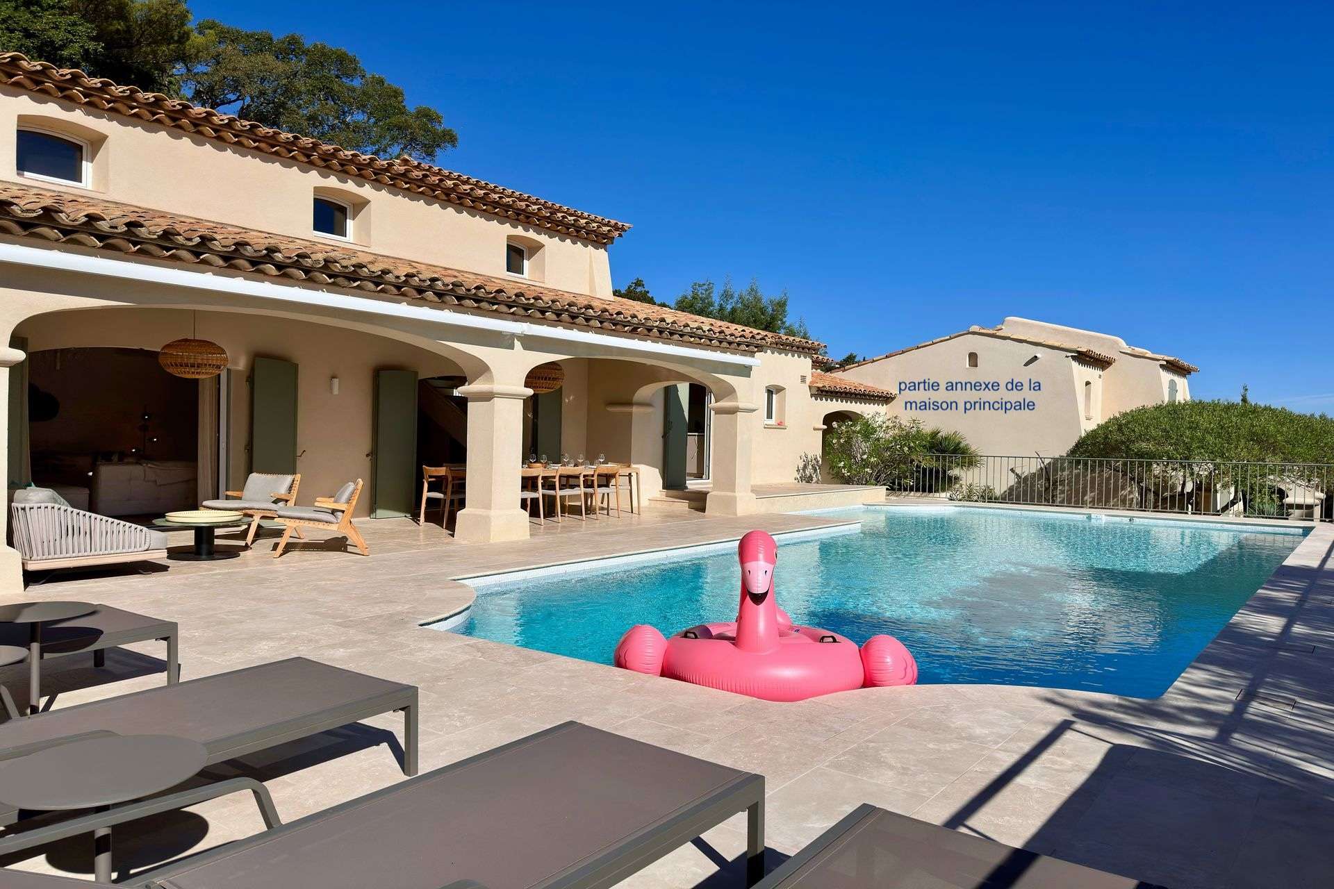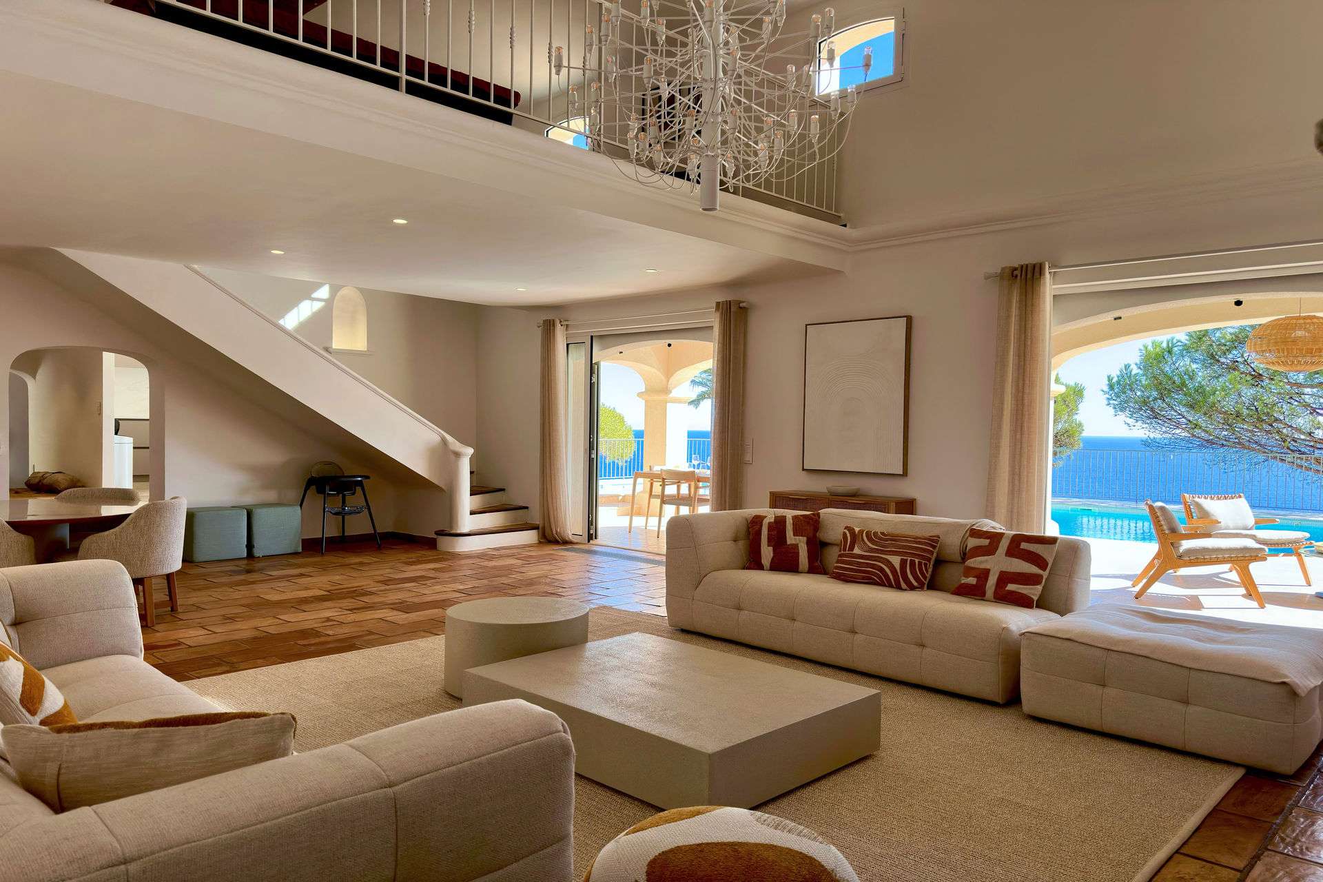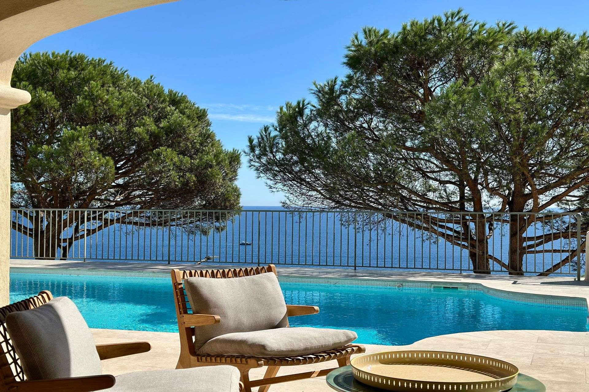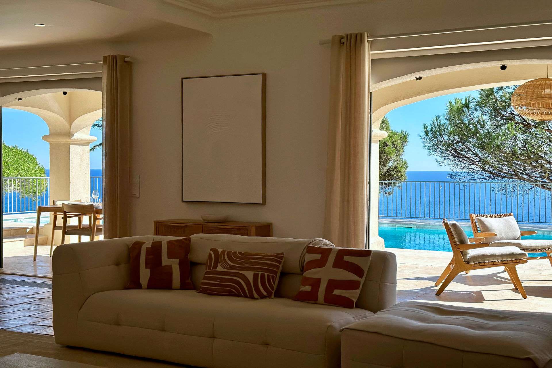 Superbe et spacieuse villa jouissant d’une magnifique vue panoramique sur la mer. Rénovée avec soin en 2024, vous profiterez des espaces intérieurs qui s'ouvrent de plain-pied vers une terrasse couverte confortablement meublée, une grande piscine et un pool-house aménagé. À l’arrière de la maison, une terrasse donne sur un jardin en restanques, agrémenté d’un salon d’été et de petits coins intimistes à l'abris des regards.
