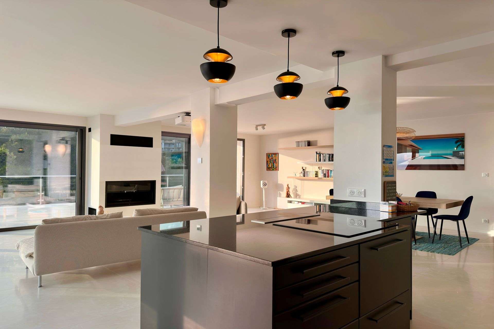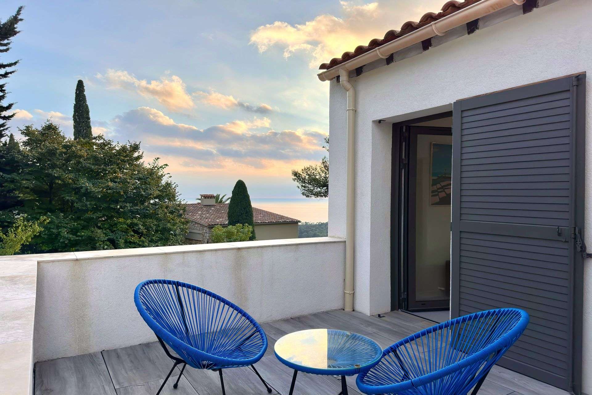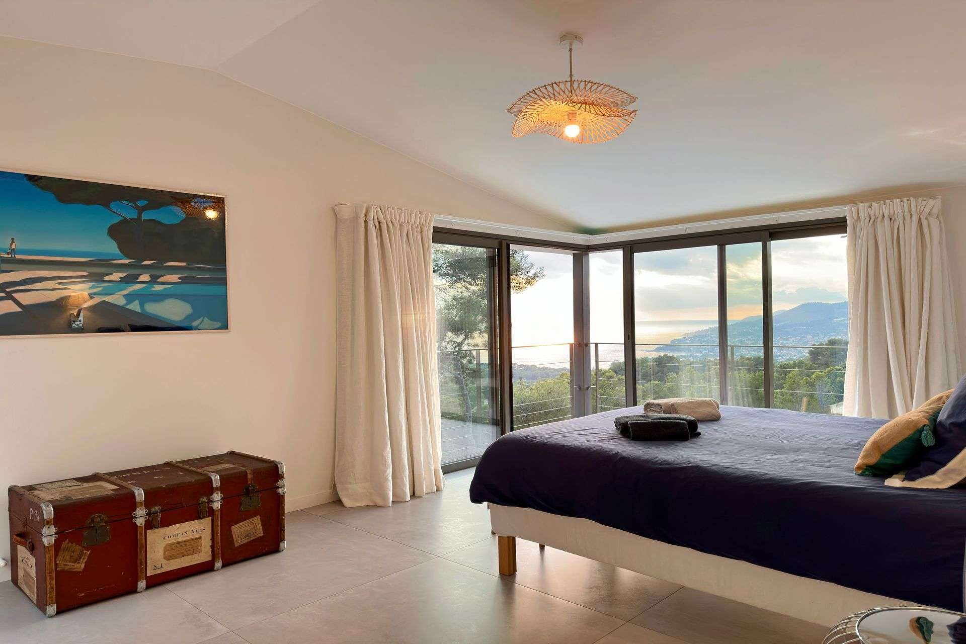 Ouverte sur la mer et orientée sud-ouest, cette villa contemporaine rénovée entièrement en 2024 bénéficie d’un emplacement privilégié dans le domaine de la Californie Varoise, proche du port de plaisance et de la ravissante presqu’île de Giens.