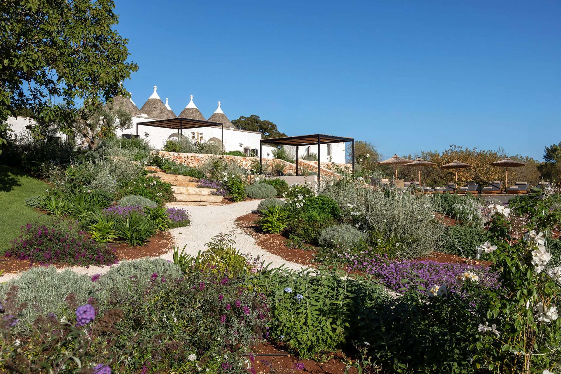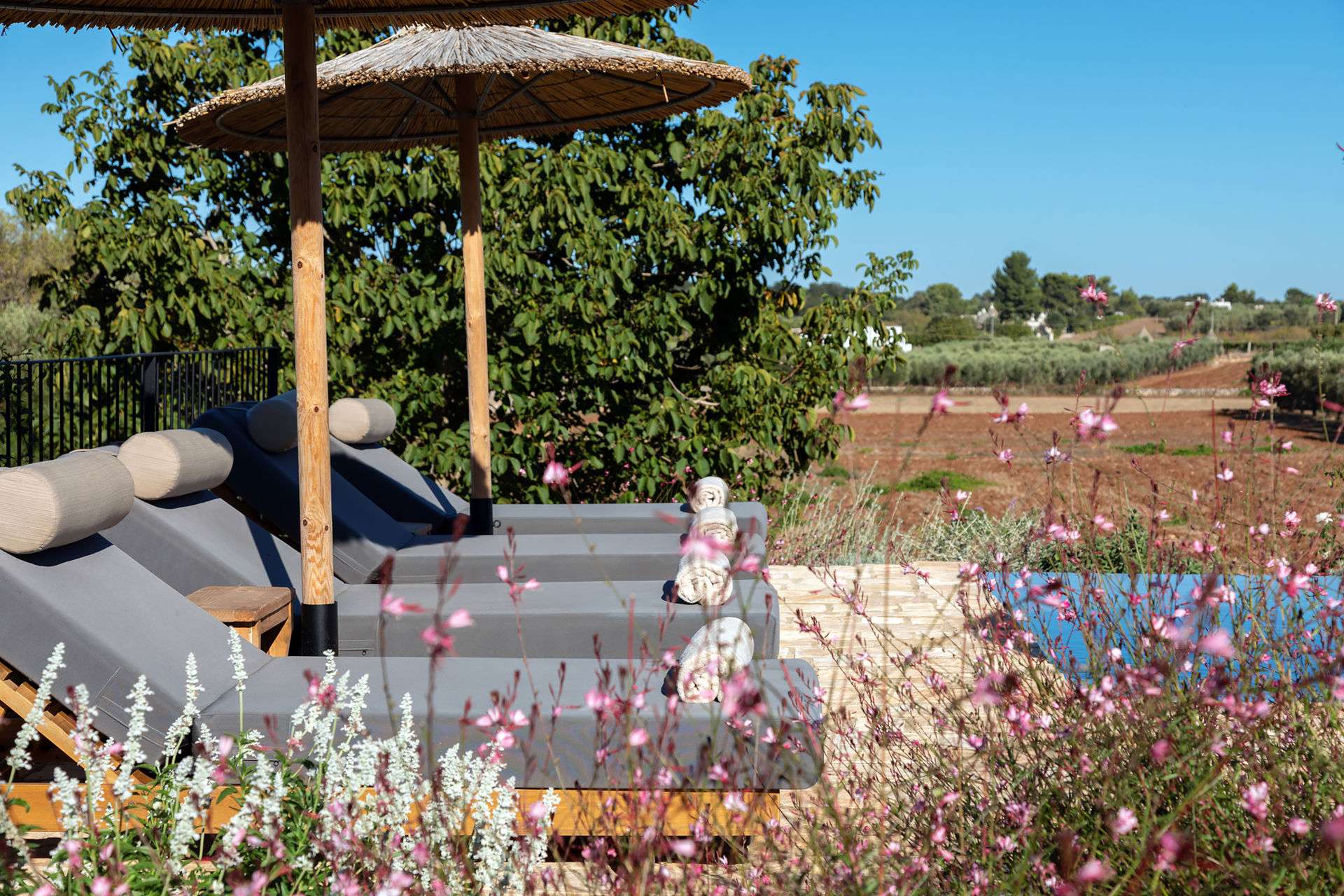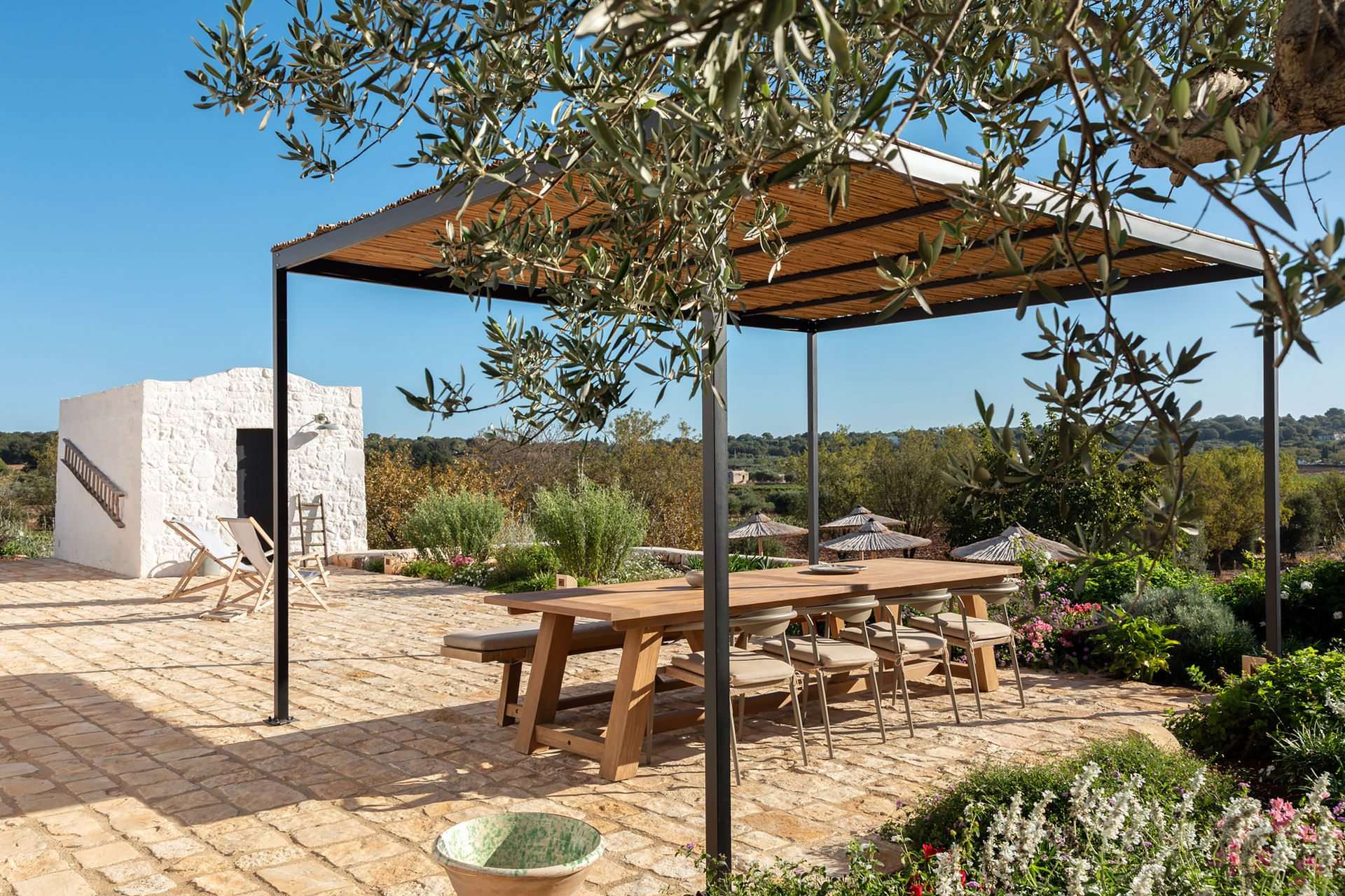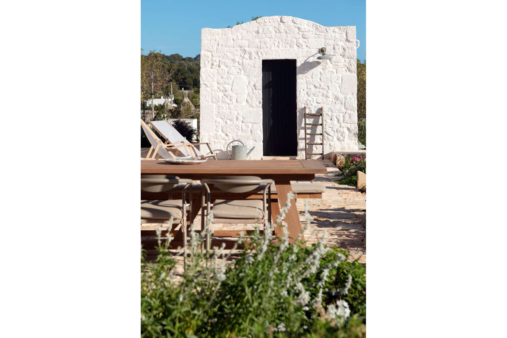 Au coeur d'un ravissant jardin fleuri, surplombant une oliveraie, ce trulli entièrement restauré avec soin combine à merveille le charme authentique au confort moderne.