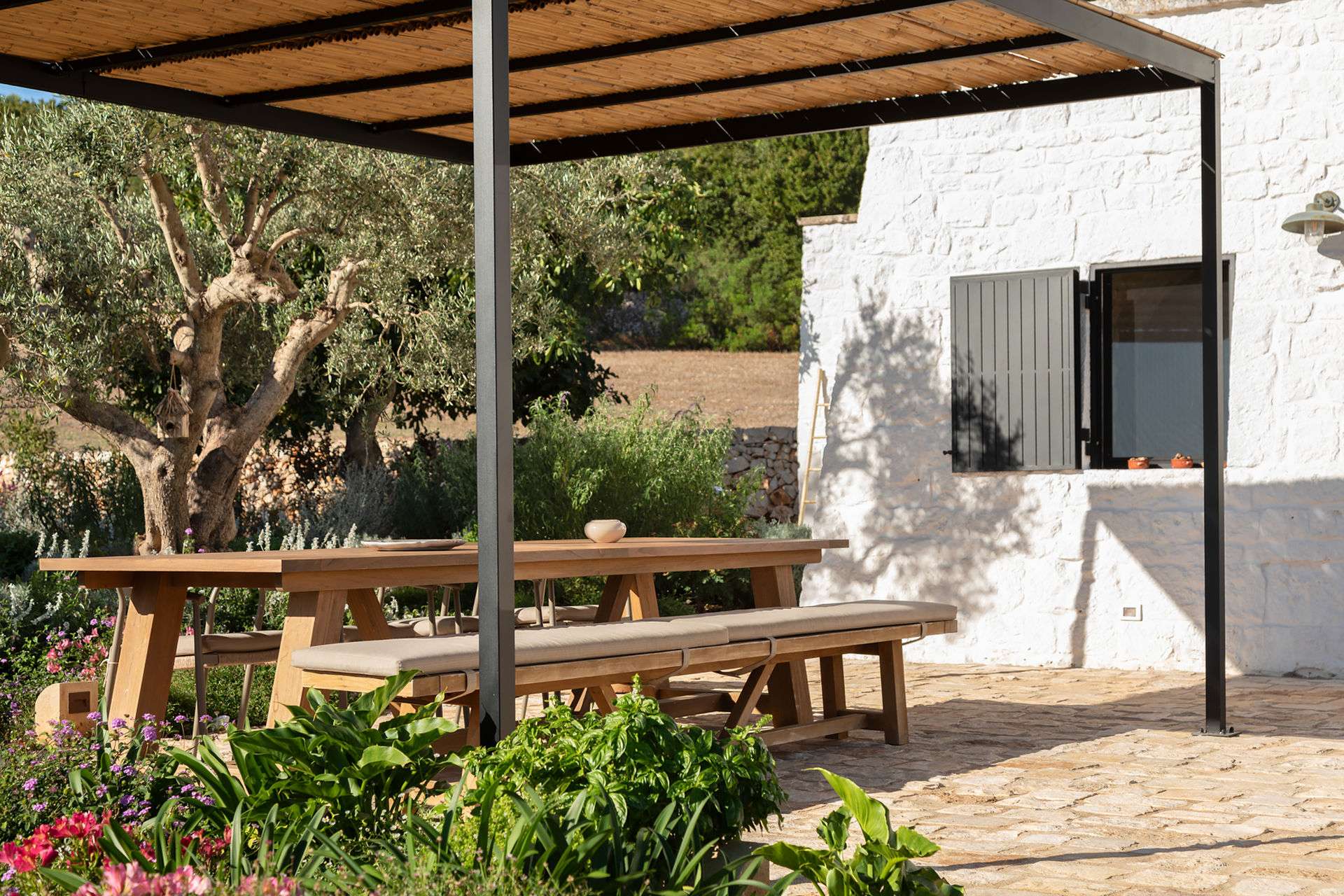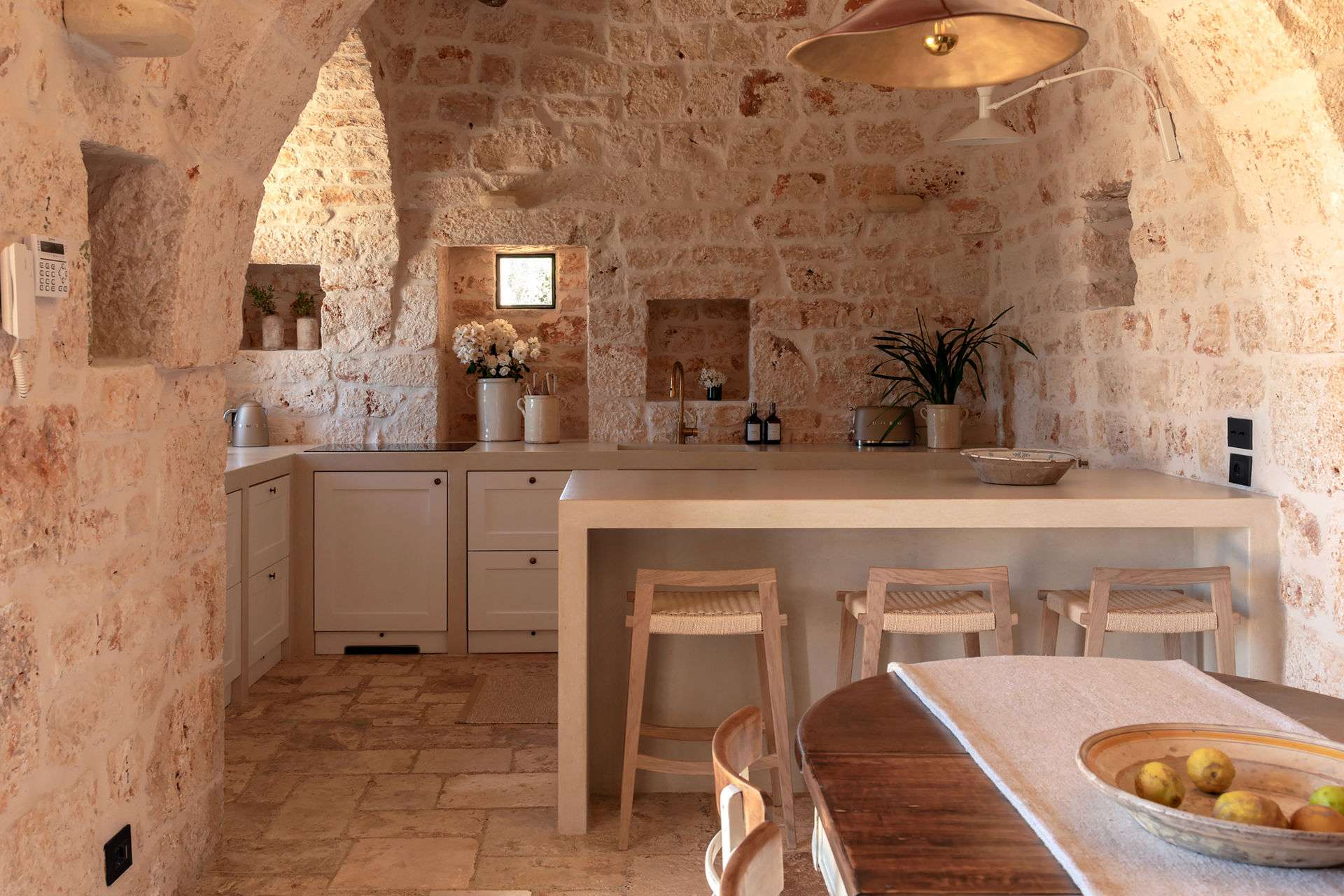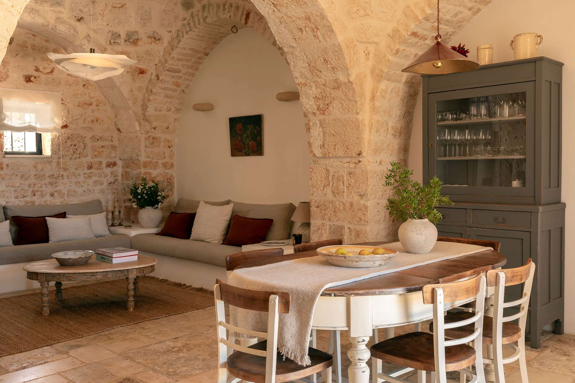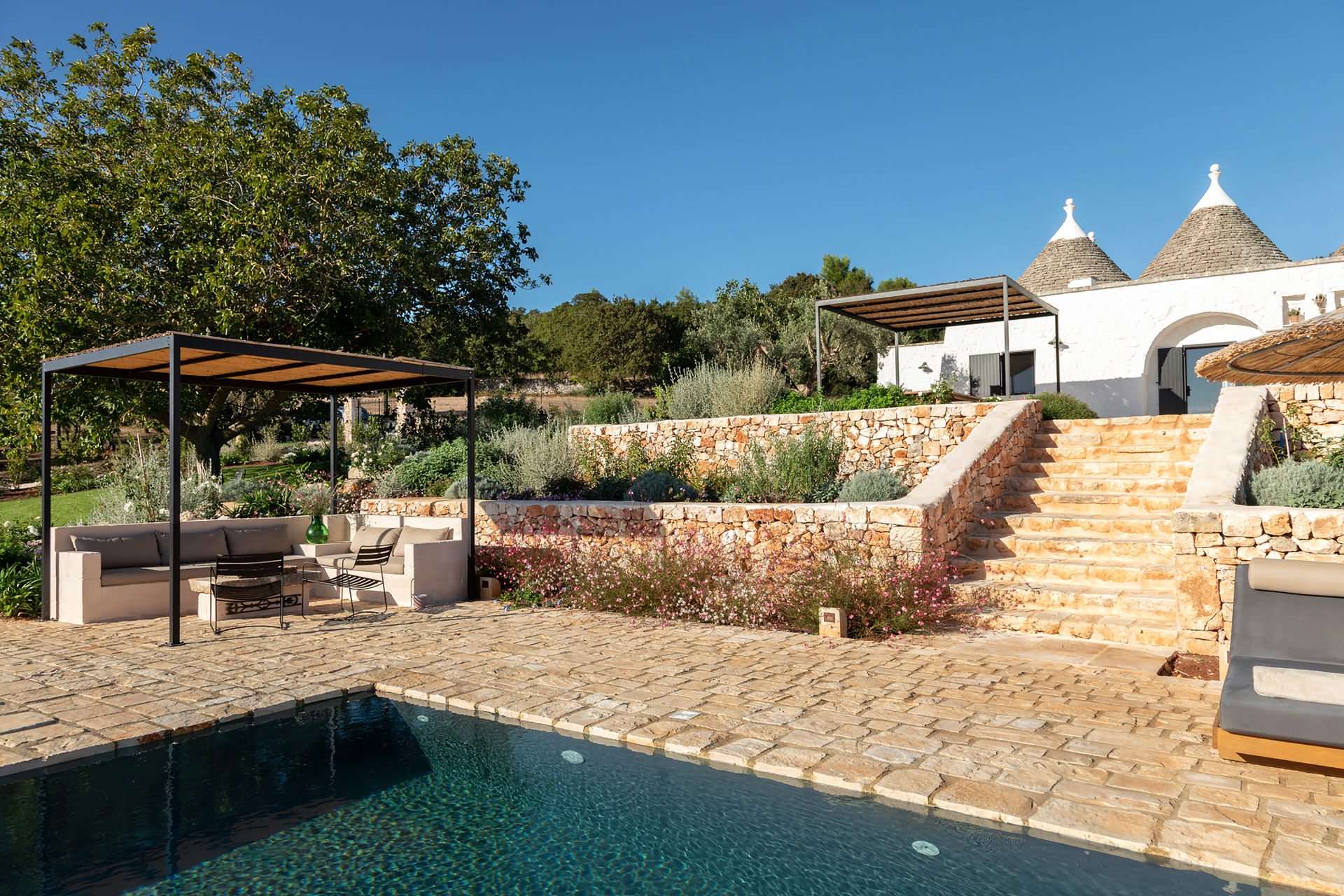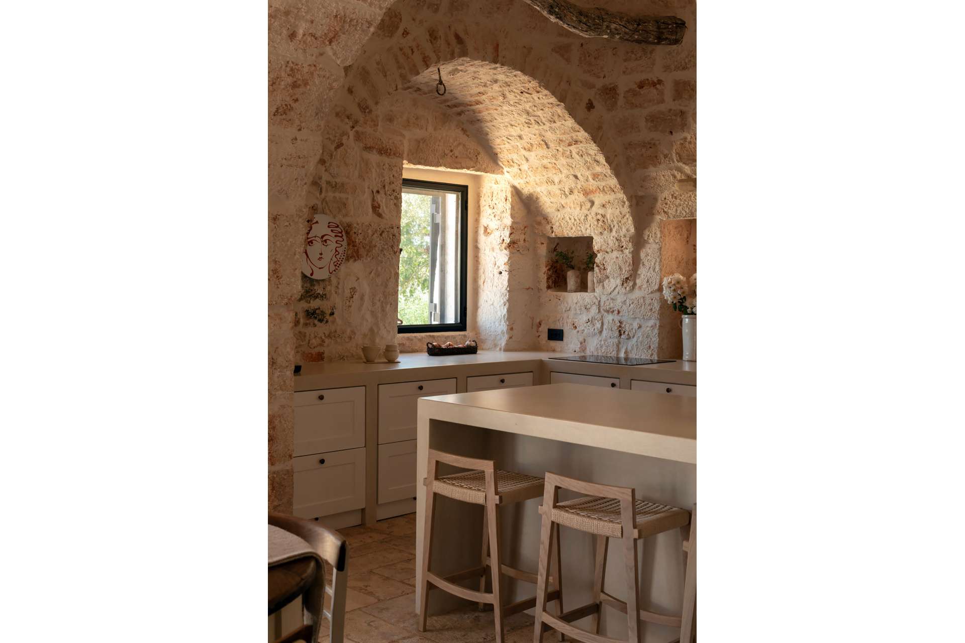 Au coeur d'un ravissant jardin fleuri, surplombant une oliveraie, ce trulli entièrement restauré avec soin combine à merveille le charme authentique au confort moderne.